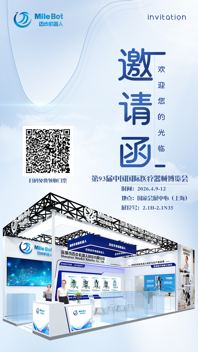 届时,迈步机器人将携旗下前沿产品与解决方案精彩亮相!诚邀各界专家学者、合作伙伴、行业同仁相聚迈步展区(展位号:2.1H-2.1N35),见证康复医疗领域的创新成果,携手共绘智慧康养新蓝图!
